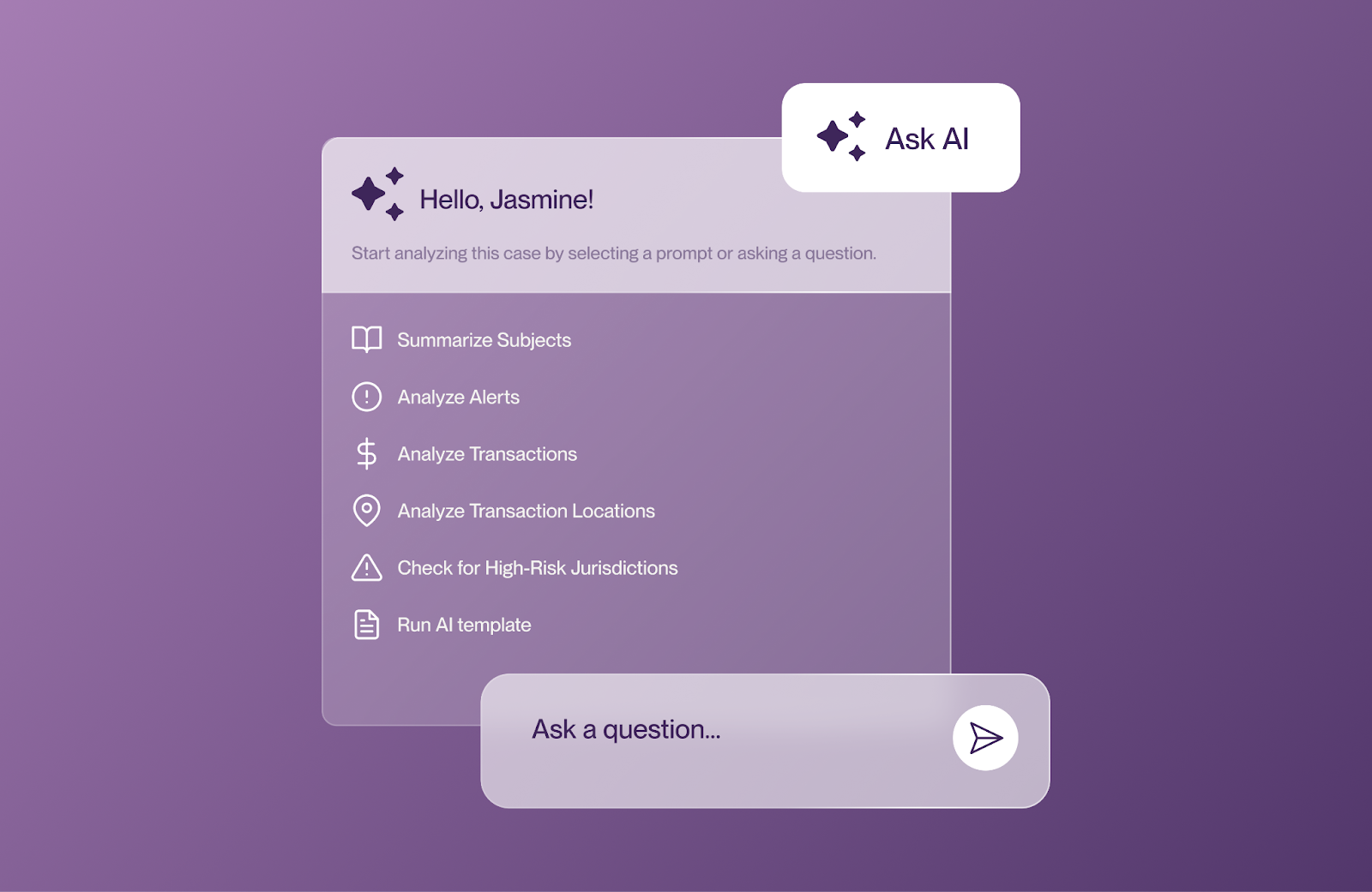 Our AI Assistant works alongside your team on their toughest cases. It surfaces relevant case information, unearths patterns, and answers questions – arming your team with AI insights and helping them move faster.
